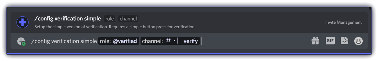 config/config view setting <setting>- View the specified setting/config set join-channel <channel>- Set the channel where join message are sent/config set leave-channel <channel>- Set the channel where leave messages are sent/config set join-msg <template>- Set the template for join messages/config set leave-msg <template>- Set the template for leave messages/config reset setting <setting>- Reset the specified setting/config blacklist channel <channel>- Blacklist/Unblacklist a specific channel such that commands can/cannot be used in the specified channel/config test message <type>- Send a test join/leave message/config auto-refresh-leaderboard set <Channel>- Setup the auto-refresh invites lb in the specified channel/config auto-refresh-leaderboard reset- Disable the current auto-refresh lb/config verification simple <role> <channel> <json>- Setup a simple verification system using buttons/config verification password <role> <password> <channel> <json>- Setup a verification system that requires a specific password/config verification randomised <role> <length> <channel> <json>- Setup a verification verification that uses randomised passwords