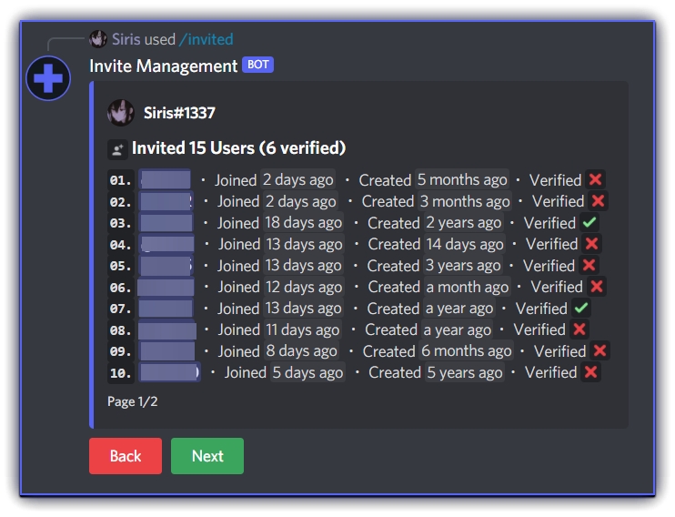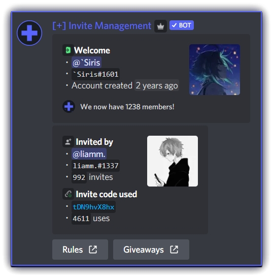 Invite Management: An useful invite tracing bot that can help you manage your server's invites by tracking joins and leaves. It also comes packed with some useful utility features!