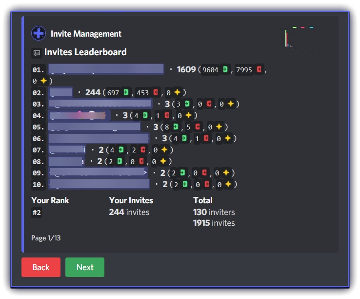 Leaderboard shows a paginated list of top inviters in your server (edited)